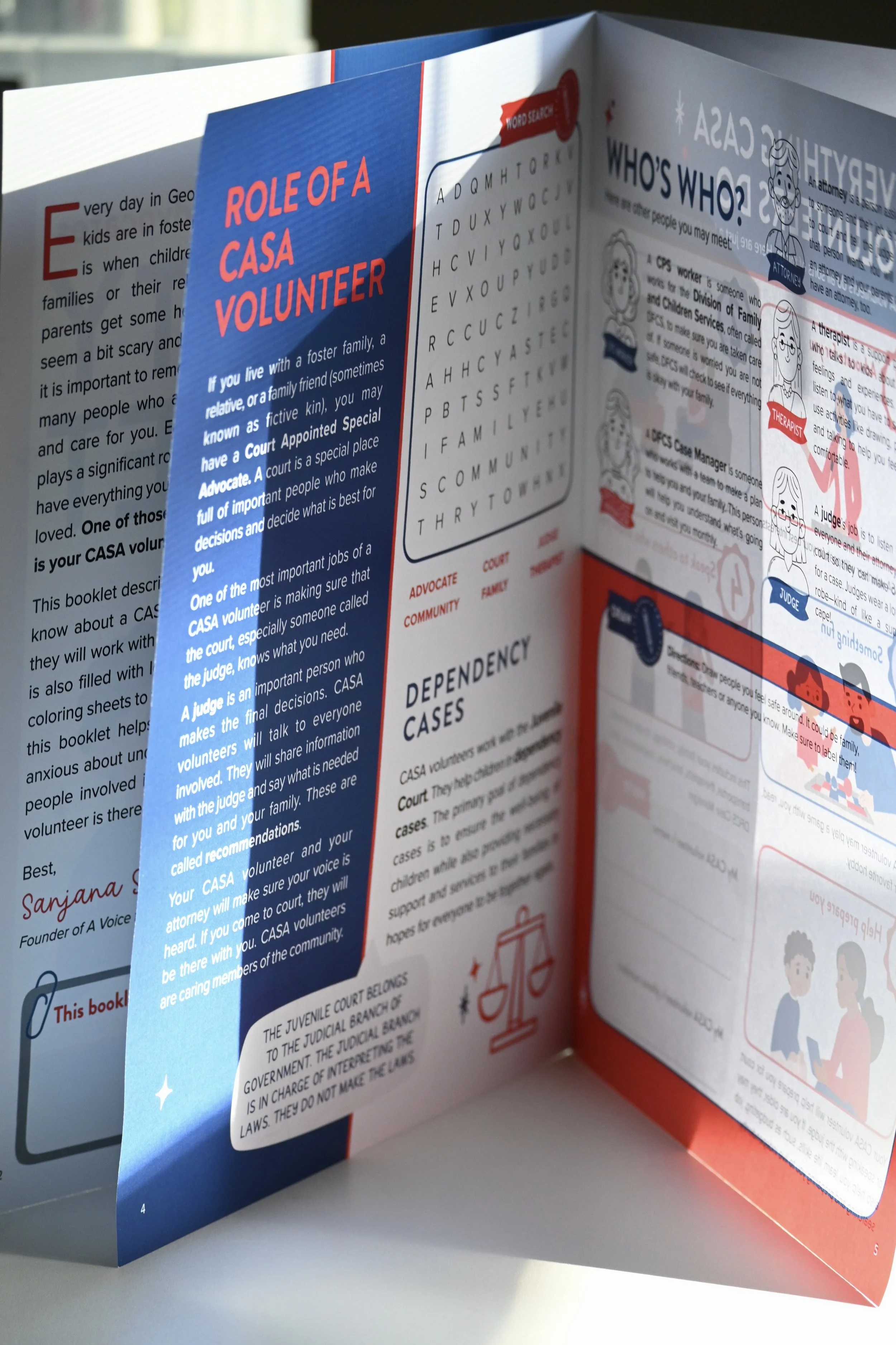 Her goal is to create a CASA Activity Booklet for all 50 states and continue developing new projects to support children navigating the court process.