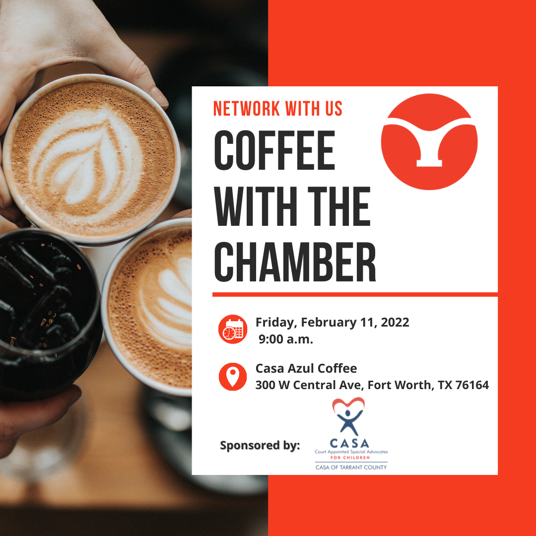 Join us Friday, February 11, 2022, at 9 a.m. for Coffee with the Chamber & CASA of Tarrant County at Casa Azul Coffee.